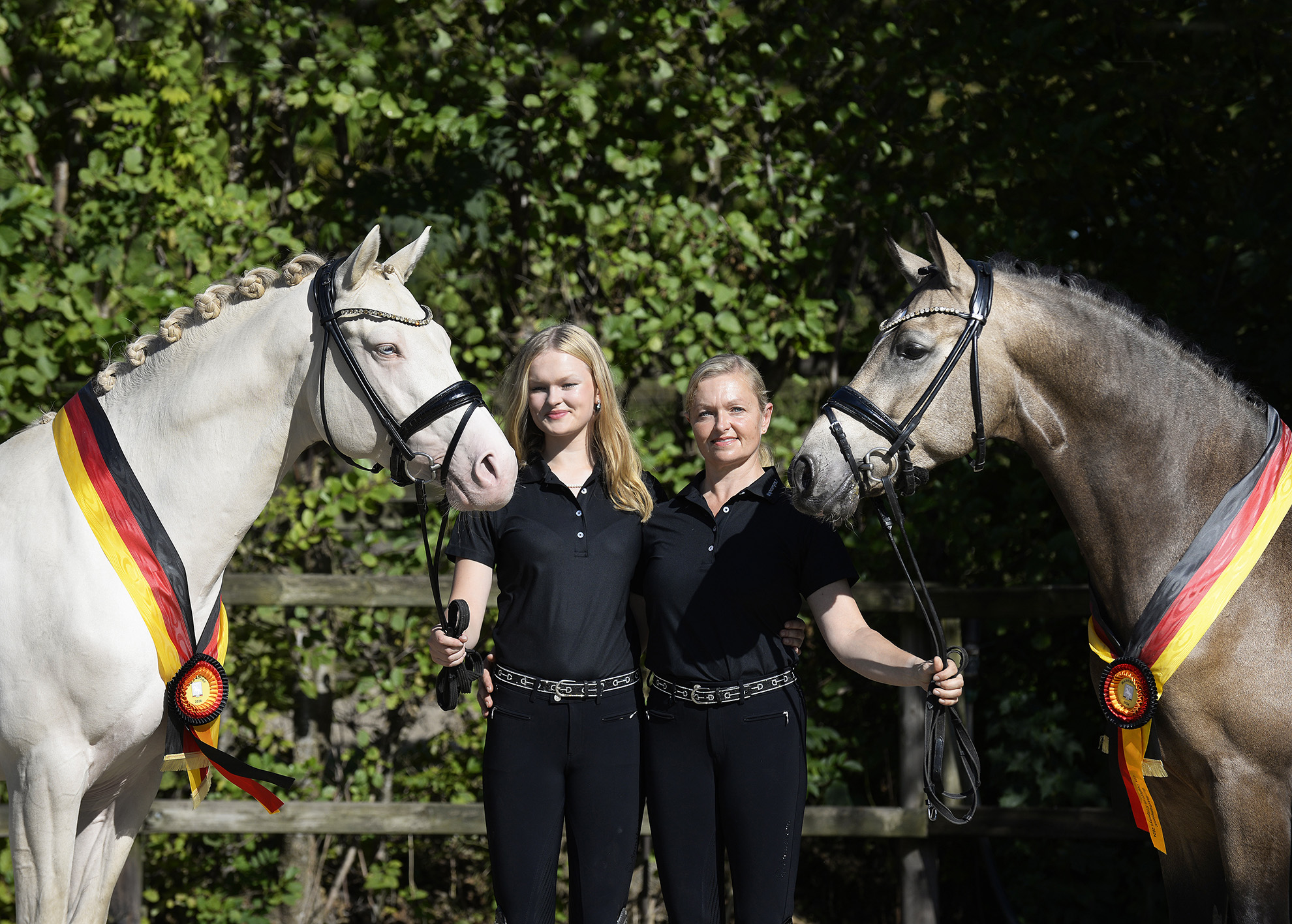 Gemeinsam mit Tochter Sophie – übrigens beide Trägerinnen des Goldenen Reitabzeichens – erfolgt die Aufzucht und Ausbildung aller in Bad Oeynhausen beheimateten Ponys sowie weiterer Warmblutpferde von Partner-Hengststationen.