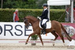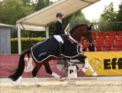 Bei den vierjährigen Hengsten steckte NOBLE DANCE NRW die hocherfolgreiche Decksaison noch in den Knochen. Etwas unkonzentriert auf die sportlichen Aufgaben erreichte er im Finale Platz vier. Jetzt ist es an der Zeit, sich wieder ganz auf die sportlichen Herausforderungen zu konzentrieren.
