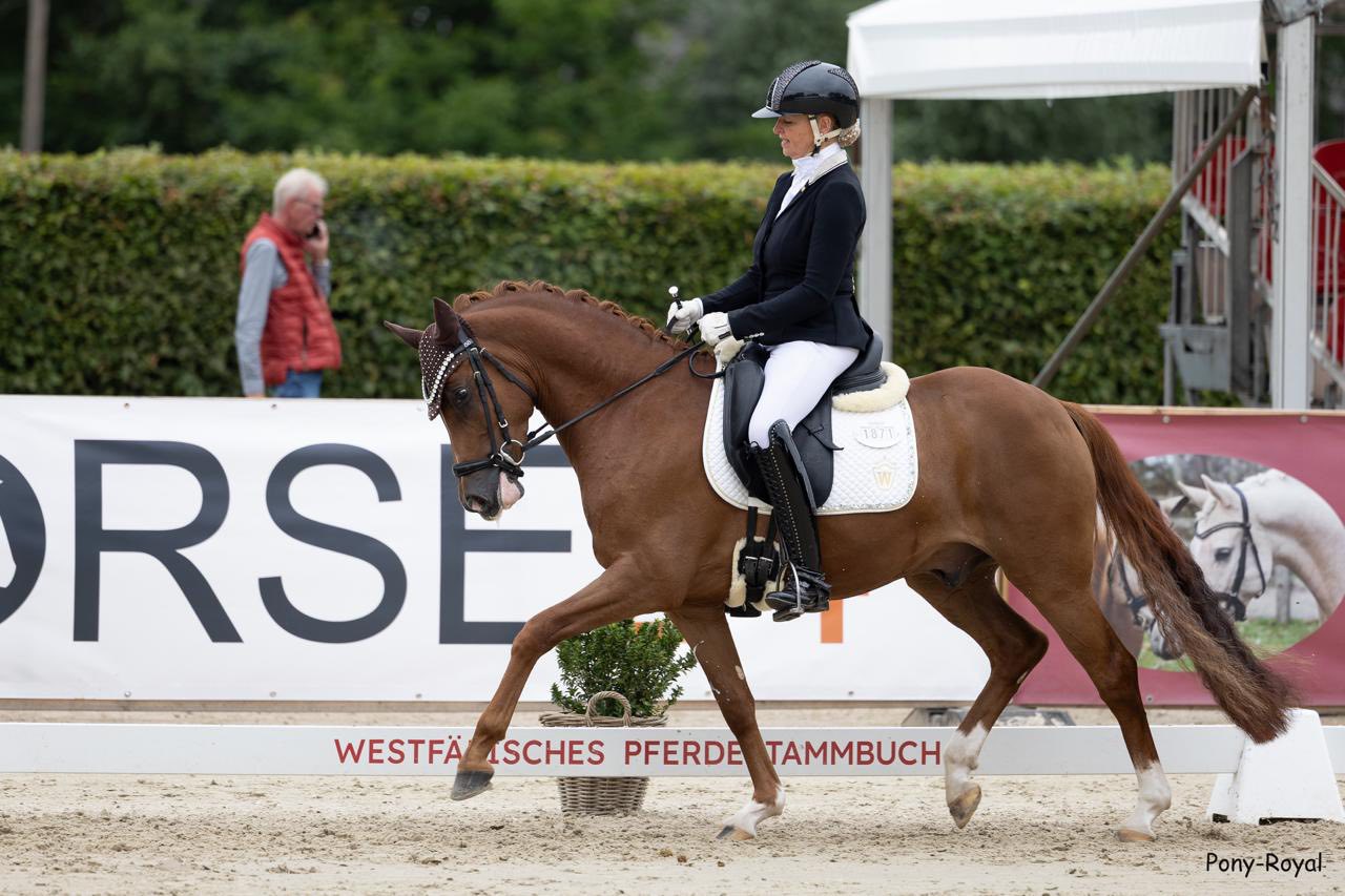 Sophie und unsere westfälische Siegerstute DONNA PRADA D zeigten zwei schöne Runden und wurden nach dem Finale für das Bundeschampionat nominiert! Somit wird Sophie in diesem Jahr ihr Debüt auf dem Reitpferdeviereck in Warendorf feiern.